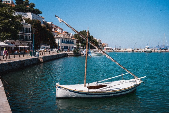 2. Fly from Athens to the nearest island, Skiathos → Ferry (or private water taxi) to Skopelos