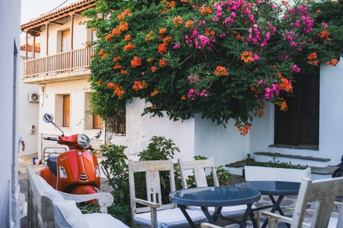 Skopelos is an amazing island with many beaches to explore, but the island is just big enough to need a car or scooter (approx. 45 mins drive end to end). If you have a motorcycle license you can also rent a scooter, which is in our opinion the most fun and European way to traverse the island!